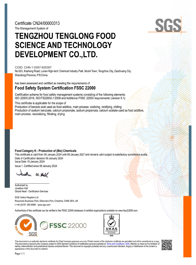 滕州市騰龍食品科技發(fā)展有限公司坐落在山東省滕州市木石鎮魯南高科技化工園區(qū),成立于1996年,前身是滕州市騰龍化工有限責任公司,公司專業(yè)生產 苯甲酸,苯甲酸鈉,丙酸鈣,丙酸鈉和醋酸鈣等系列產品。